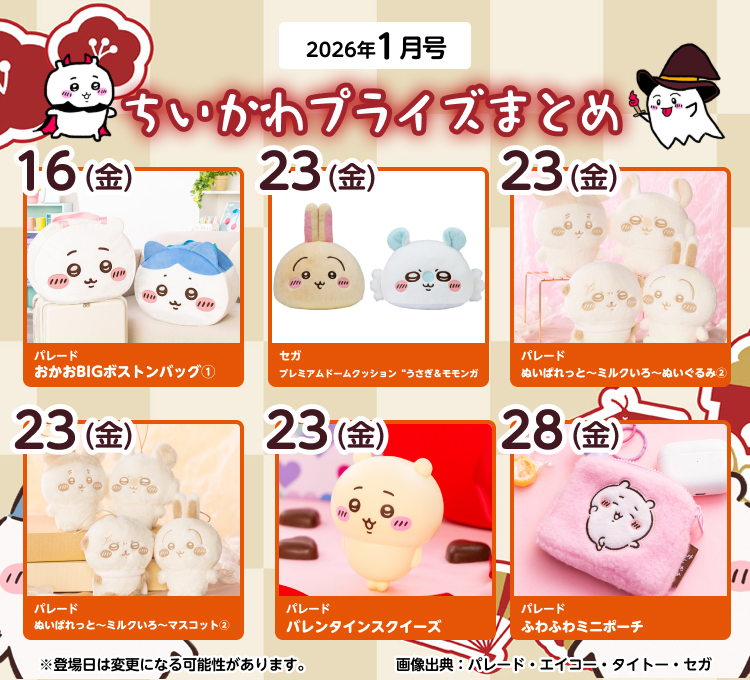 2026年1月登場のゲームセンターやオンラインクレーンゲームで獲得できる「ちいかわ」アミューズメントプライズ景品の最新情報を全てまとめました!