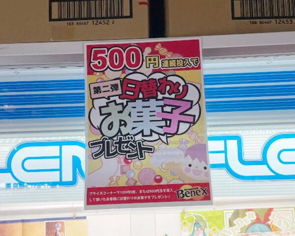 500円連続投入するとお菓子がもらえる