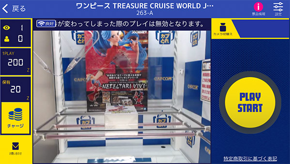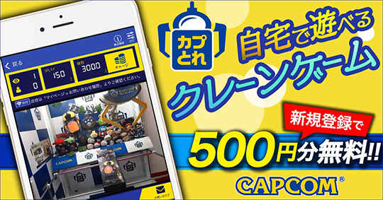 ストリートファイターやモンスターハンターで有名なカプコンのオンラインクレーンゲームアプリ