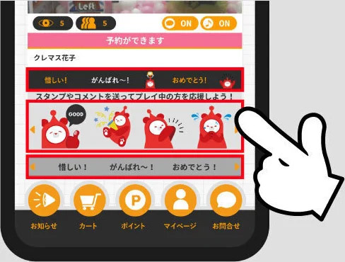 景品獲得時にスタッフやクレマスのキャラクターがグッジョブを出すことがあります。