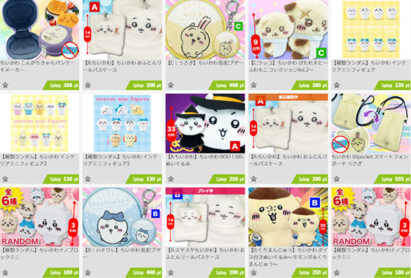 執筆時点で最新の「おふとんリールパスケース」があり、防犯ブザーやスマホポーチなどファンにはたまらない景品があります。