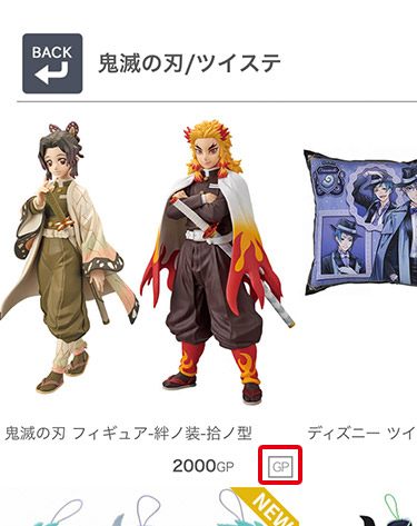 以下のように景品の下に「GP」マークがある台はGP専用で無料チケットで遊ぶことが出来ません。
