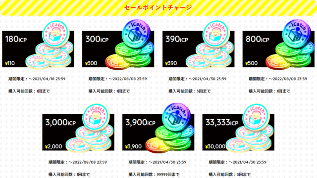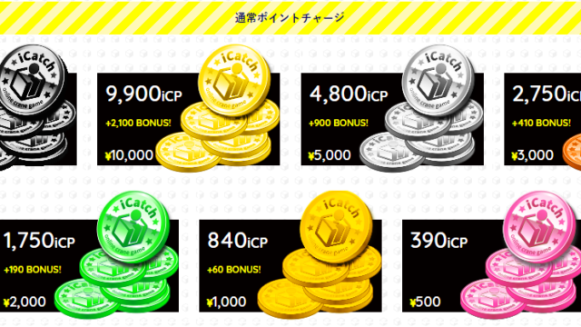 アイキャッチオンラインではゲームで遊ぶポイントをiCP(アイキャッチポイント)という単位で使っています。