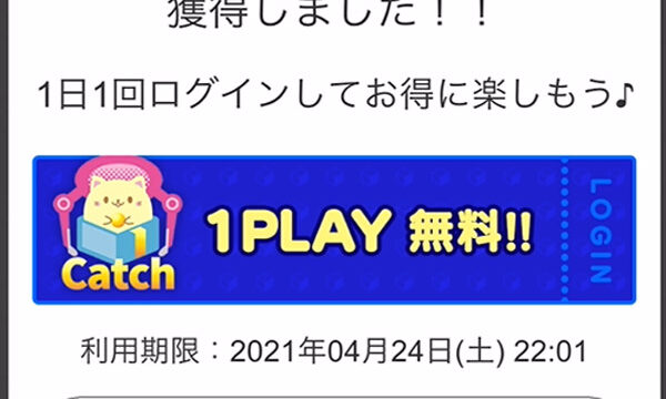 毎日1プレイ無料チケットを配布しています。(イベント時期は2枚の時も!)
