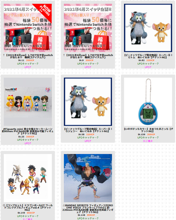 台種も多いから迷うかなとか思ったら遊び方別でもちゃんと選べるし、カテゴリー別でも景品探せるので、品揃えが良すぎて膨大な量のプライズの中からでも、遊びたくなる台を見つけやすい!!自分は☆スーパーアシスト☆台とイベント台が結構好き!!新規登録でポイントくれたりとかも嬉しいし、入荷情報とかもしっかりしてくれるから、新商品を見逃せずに済むのも嬉しいところ!!