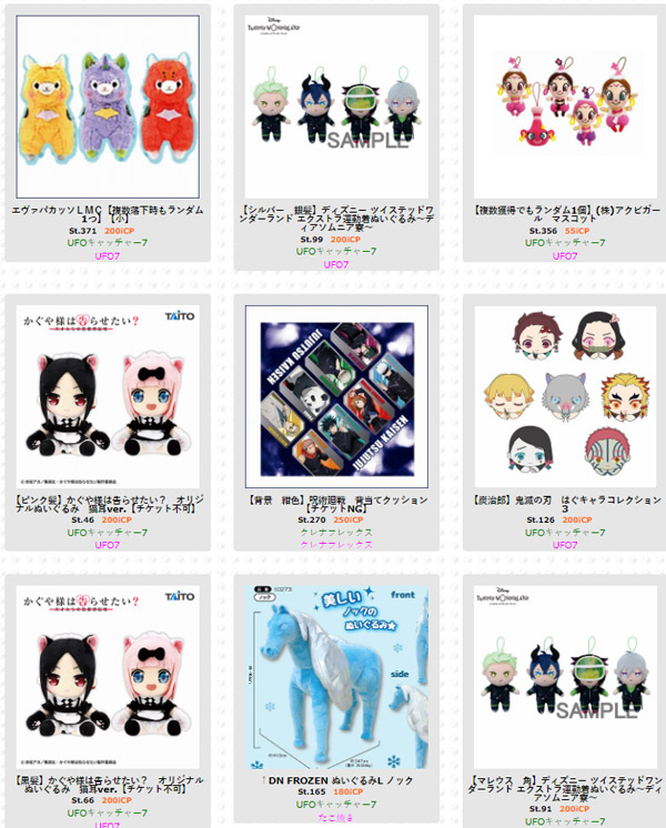 オンクレってどうしてもフィギュアとかアニメ系の景品に偏りがちだと思うのですが、アイキャッチオンラインはアニメ系の景品も多いけど、子どもが好きそうなキャラクターのぬいぐるみとか、雑貨とかお菓子とか、いろいろな景品が揃っています(=゜ω゜)ノ