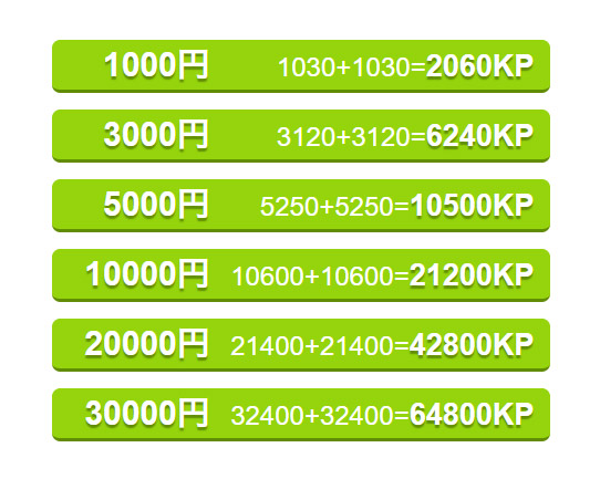 3.0 5KP(1日2回) ※1度でも課金すると10倍相当に跳ね上がる |