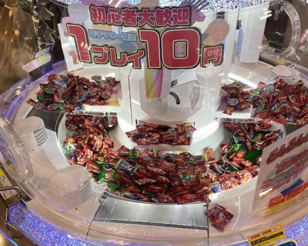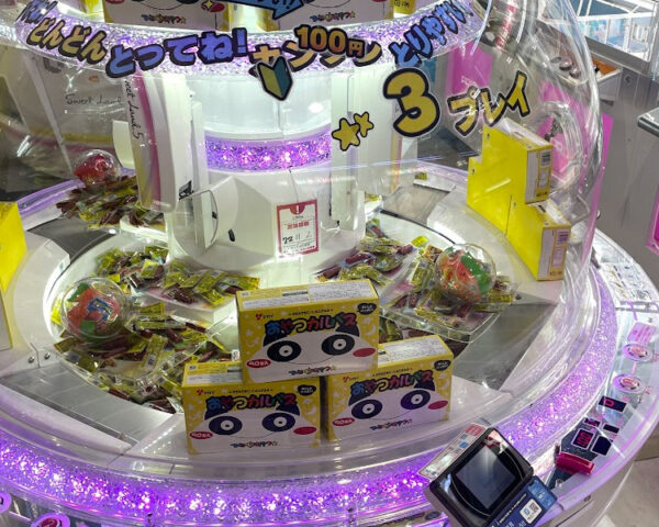 他に100円3プレイキャッチャーもすごい設定で、100円で100円相当のお菓子が3つとか取れたりします。