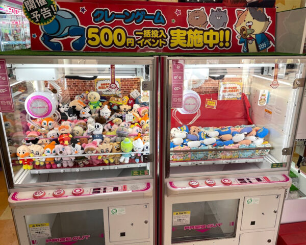 クレーンゲーム設置台数が多すぎてどこから遊ぼうか悩むレベルです。