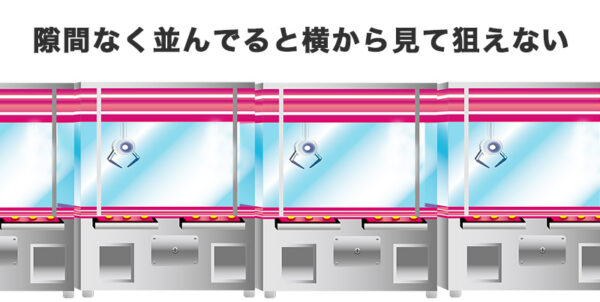 クレーンと景品の距離が近ければ近いほど狙いやすくなるので台選びの参考に!