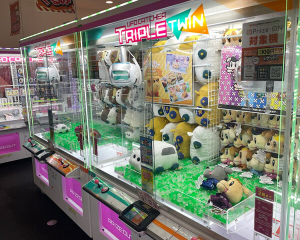 何度でも操作可能・3本爪で狙いやすい・ぬいぐるみ景品が多い・天井があることからクレーンゲーム初心者でも楽しみやすい設定となります。