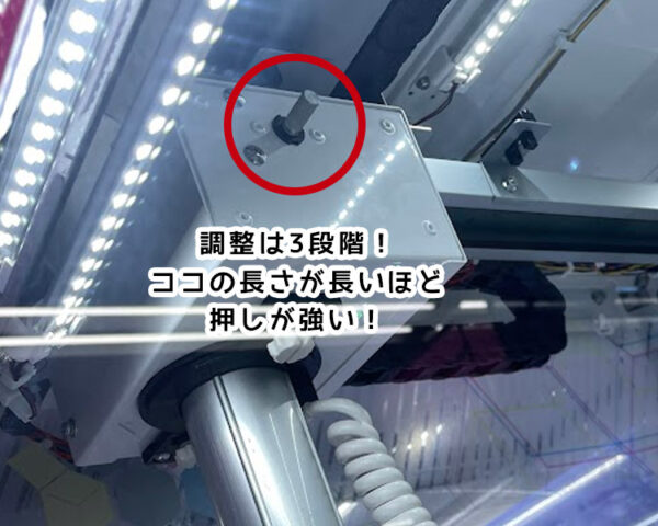 UFO CATCHER9・10では、アームユニット本体の根元にある銀の棒を見れば、プレイをしなくても押しの力を判別可能!