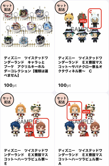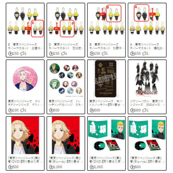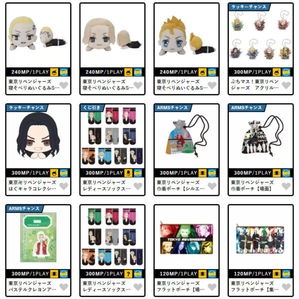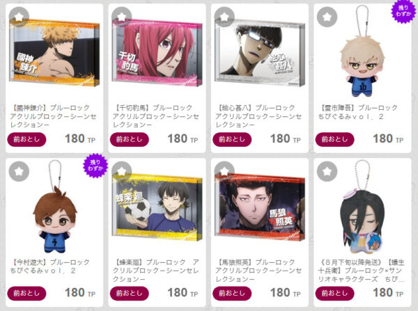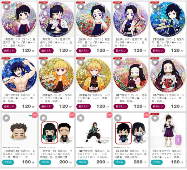おすすめ作品:ちいかわ(多)・ワンピース・ハイキュー・アイナナ・ブルーロック・鬼滅の刃・初音ミク・呪術・ツイステ・ジャンプ系・カプコン限定