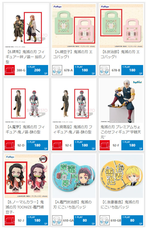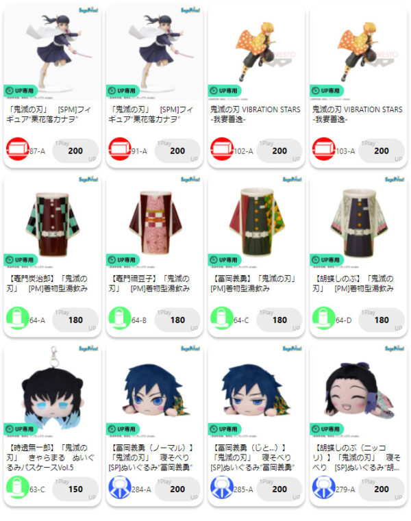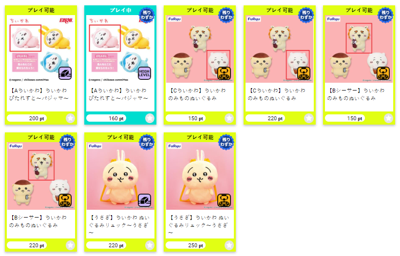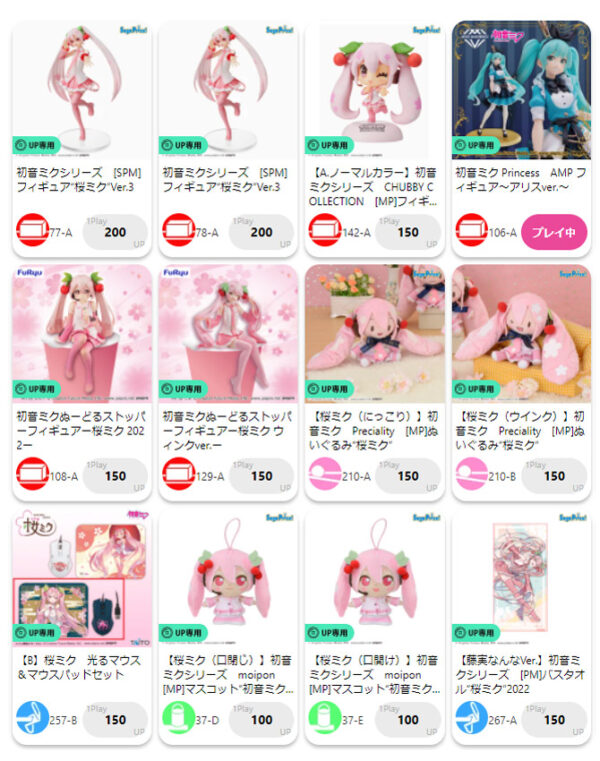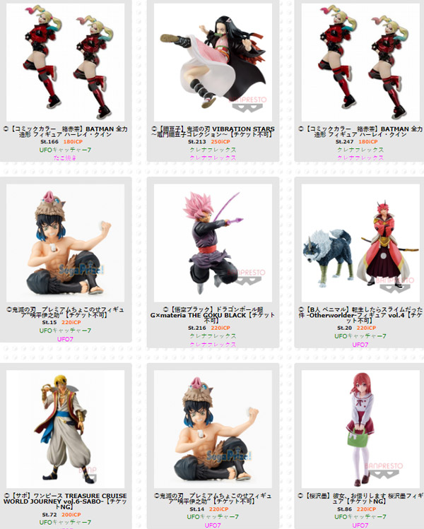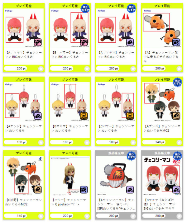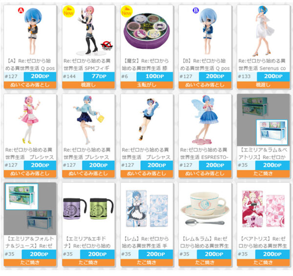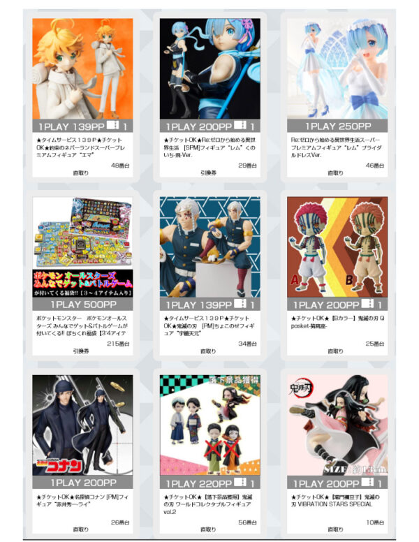 ここでは、いかに少額で景品が取りやすいかを重要視して抜粋!