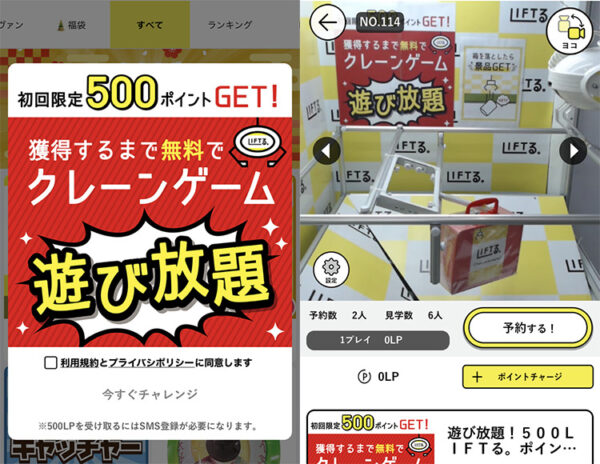 他にオンクレ限定プライズの他にゲームセンターでは取り扱えない高額景品、食品など景品数が10,000点を超えるアプリもあります。