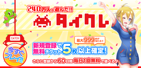 タイクレは通常では初回インストールで5プレイの無料チケットをもらえます。