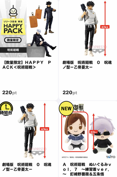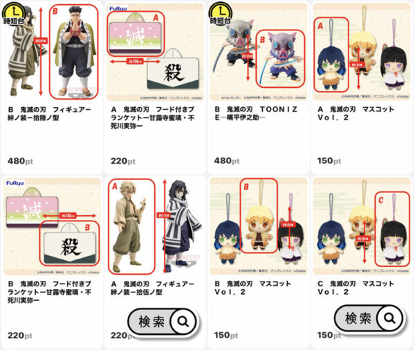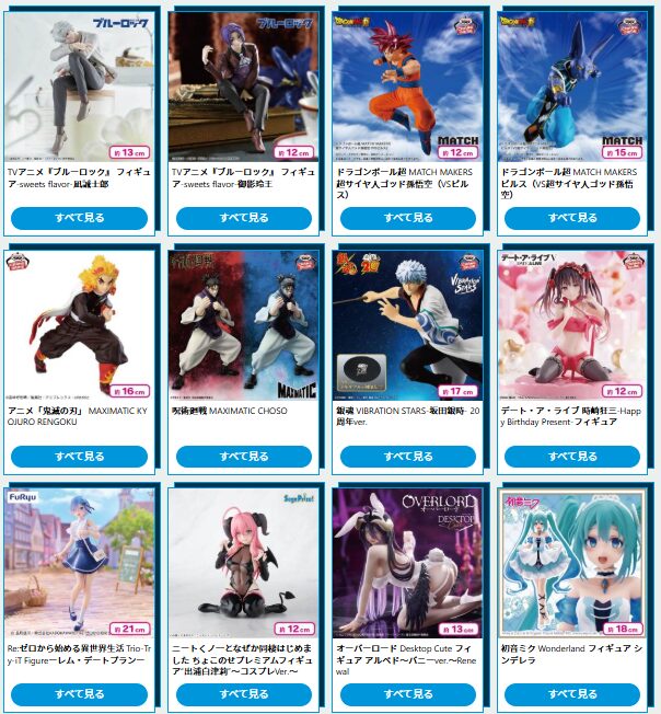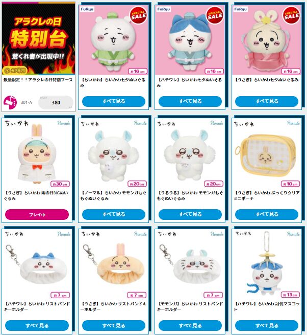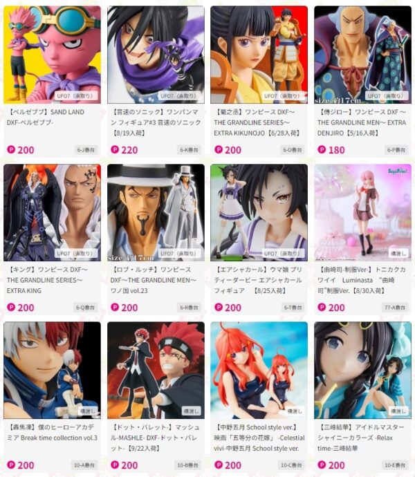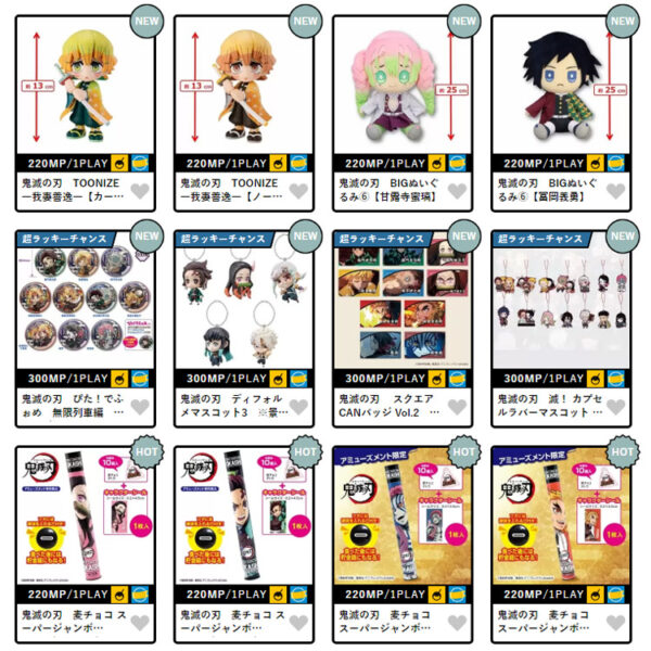 基本的にはゲームセンターで使われているプライズ景品(フィギュア・ぬいぐるみ・雑貨・お菓子)がメイン!