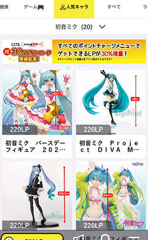 初回インストール特典ですが、以前は単純に500LP(500円分)でした!