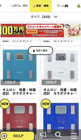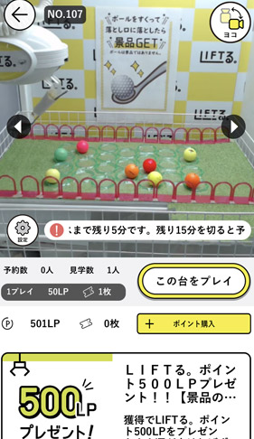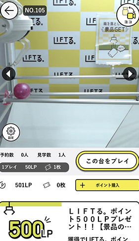 LIFTる。ではゲームで遊ぶポイントをLP(LIFTる。ポイント)という単位を使っています。