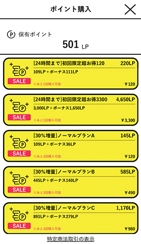| 初回無料サービス | 4.0 500LP(およそ500円分) |