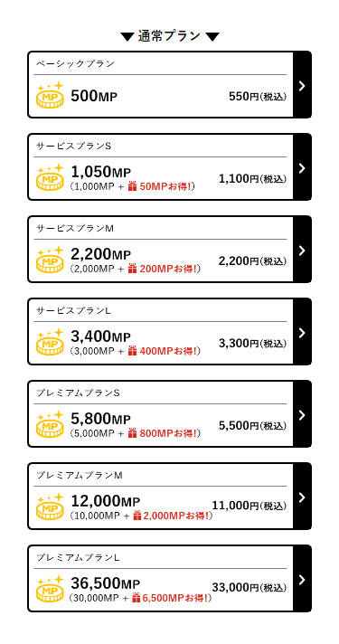 初回だけ1,100円で1350円分のMPが購入できるお得なキャンペーンをしています。