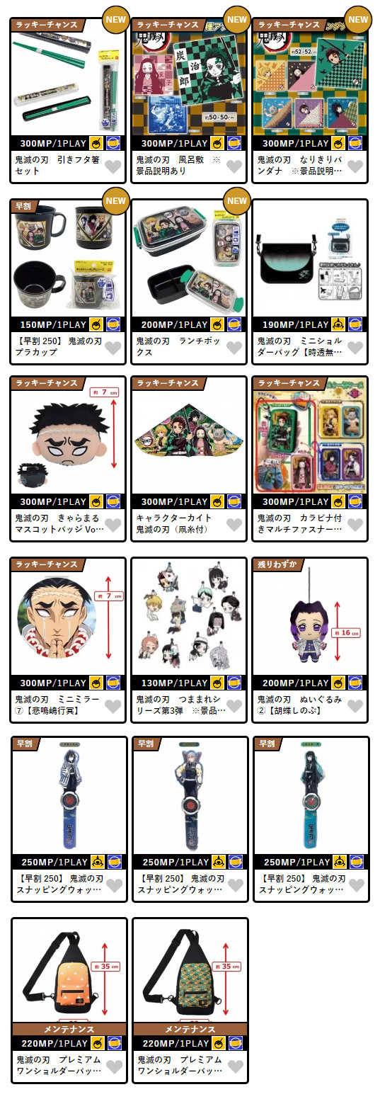 鬼滅の刃では眼鏡拭きとか腕時計とか他ではあまり見られないものがありました。