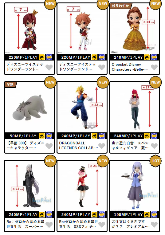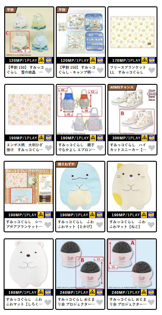 ラインナップを紹介しますが魅力的な景品が多いのでかなり十分充実していると感じます。