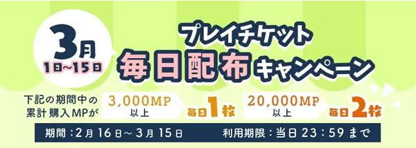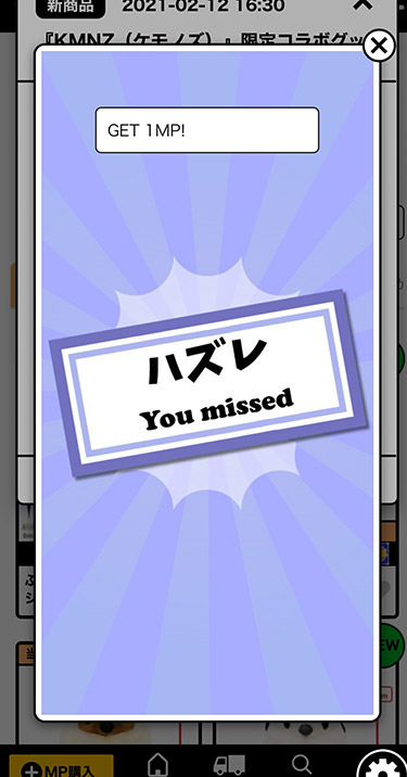 | ログインボーナス | 4.0 おみくじ方式 1MP・10MP・50MP |