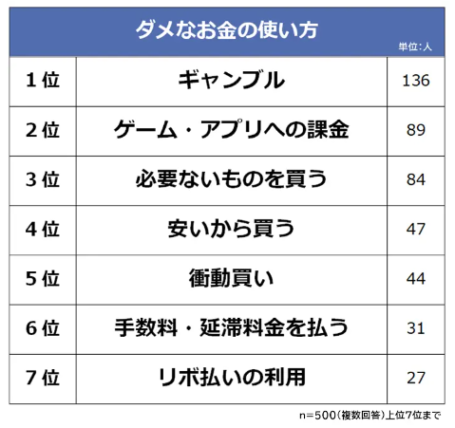 1位がギャンブルで136人、そして2位が89人でゲーム・アプリへの課金となります。