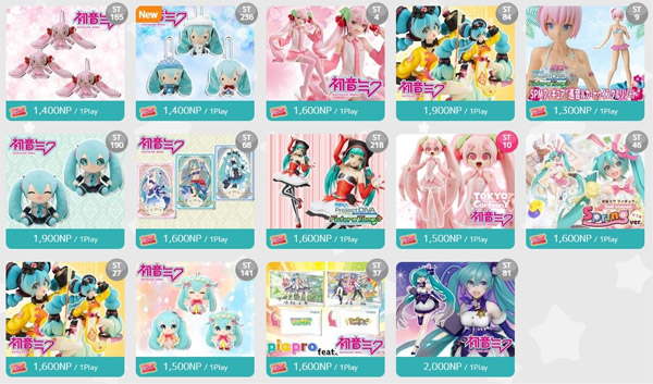 マスコットやぬいぐるみしか狙ってないので他は分かりませんが、大体1プレイ1300~1500ポイントが多いです。