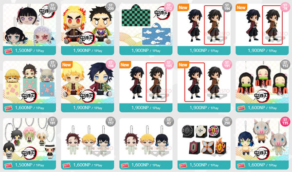 ぬいぐるみでは「鬼滅の刃」「ポケモン」「すみっコぐらし」の可愛い景品が多いです。