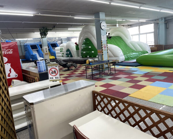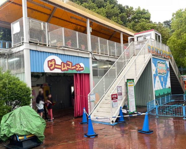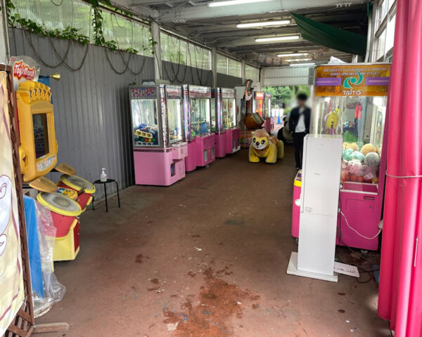 ゲームコーナーは入口を抜けてすぐ左にあります。(この日はいきなり土砂降りになったため、雨宿りの為にゲームコーナーに人が集まってましたw)