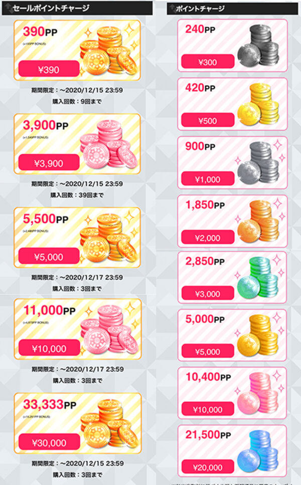 どんなイベントかっていうと、指定されたポイント(3000PPとか)をチャージすると