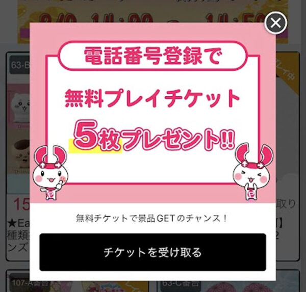ぽちくれの初回特典は5プレイ分の無料チケットです。