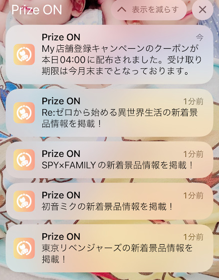 さらに目的のプライズをお気に入り登録することによって、忘れないようにプッシュ通知で教えてくれます。
