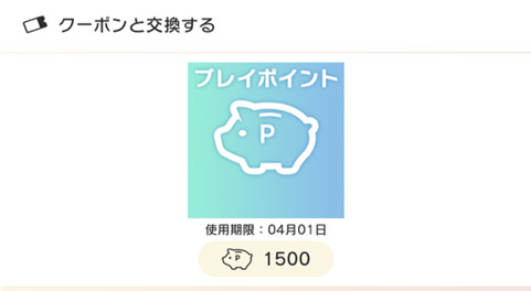 また、クレーンゲームの無料チケットへ交換する場合は1500ポイントで1プレイ分入手することができます。