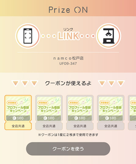 プライズオンは「UFO CATCHER」と連動することによって、クレーンゲームをお得に便利に遊べるアプリになります。