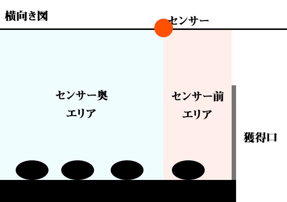 手前にいるにも関わらずセンサーを通過することがないので景品を獲得口まで運べるようになるのです。