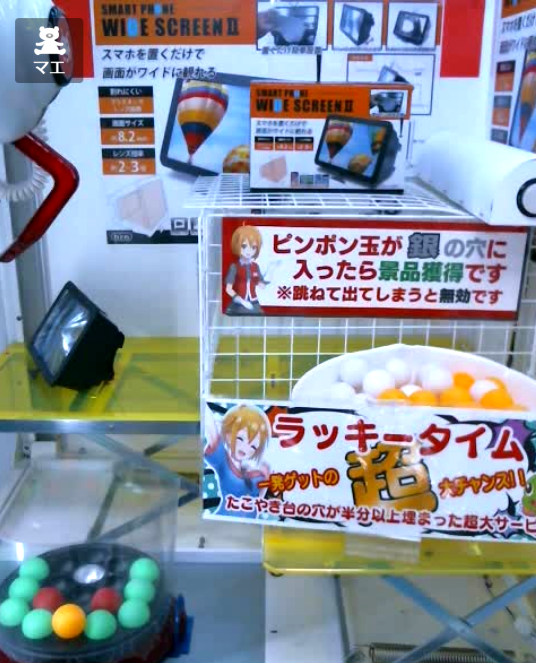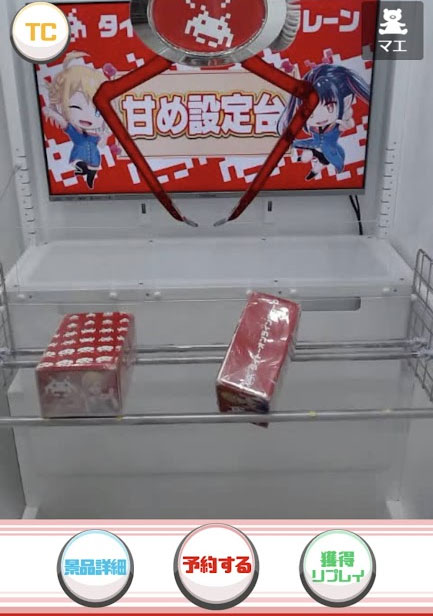 前のプレイヤーが景品場外に出してしまい、問い合わせが、できないので、会得判定も出来ずに、空でアーム動かし、お金をドブに捨ててました笑