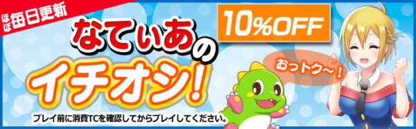 | ログインボーナス | 3.0 ガチャ仕様!もらえるTCが変わる! 運がいい日は1プレイ無料チケット |