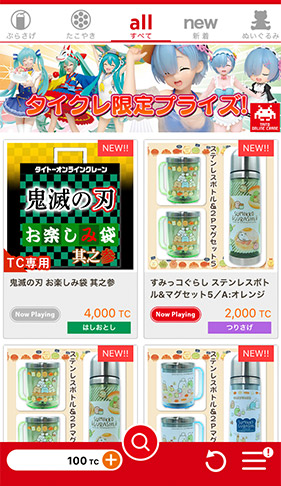 タイクレとはゲームセンターでも実店舗を出しているタイトーのオンラインクレーンゲームアプリです。