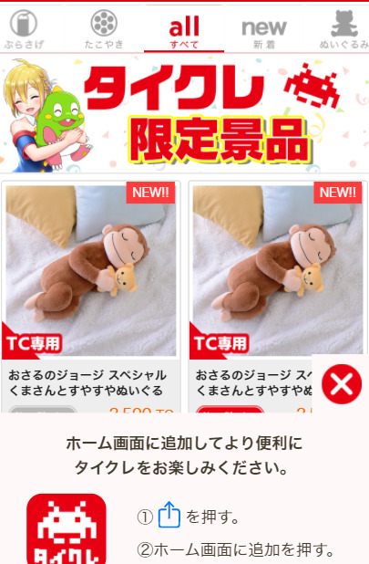 タイクレ限定景品ってめっちゃ魅力的なんですよね~。。。