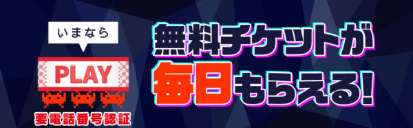 「アプリダウンロード→SMS認証完了後」に2か月間(約60日)毎日1枚の無料プレイチケットがもらえます。