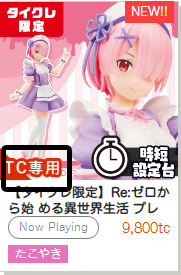 TC専用台では基本的にたこ焼きや確率機と言った1発で取れる可能性がある台や、登場したばかりの新しい景品、タイクレ限定のフィギュアとかを設置してる傾向にあります。