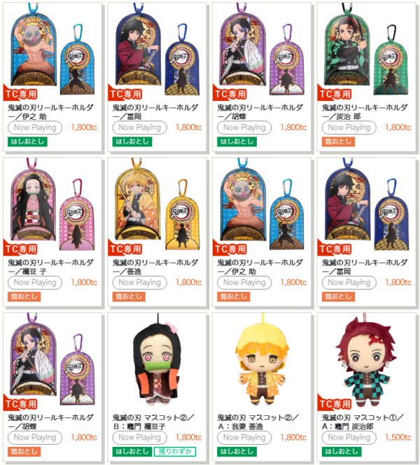 大人気の鬼滅の刃のグッズとか初音ミク、ソードアート・オンラインの他にもゲームセンターで人気のものは確実にあります。