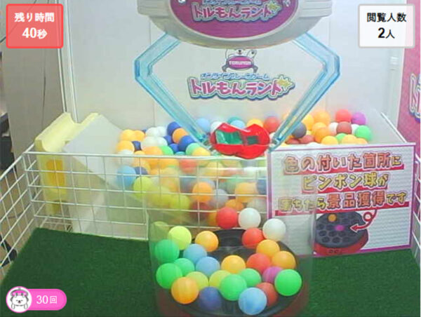 - クレーンを操作してピンポン玉をすくう