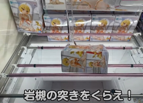 谷落としは景品(箱)を2本爪のアームで箱の位置を調整してゲットする実力重視の設定となります。