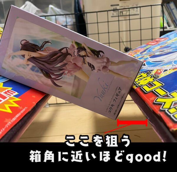 奥移動がしっかりと中心を捉えることができていれば、箱の重い側(重心)が谷にハマる形になります。