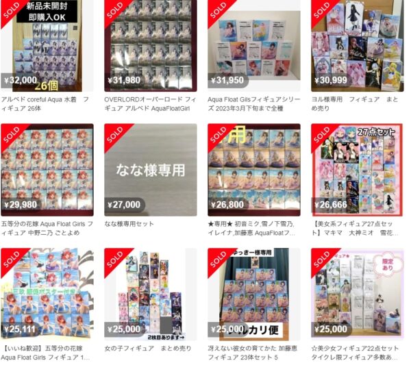 クレーンゲーム転売で安定して利益を出している人は、ただ単品で売るのではなく、シリーズやキャラクターを揃えて販売しています。
