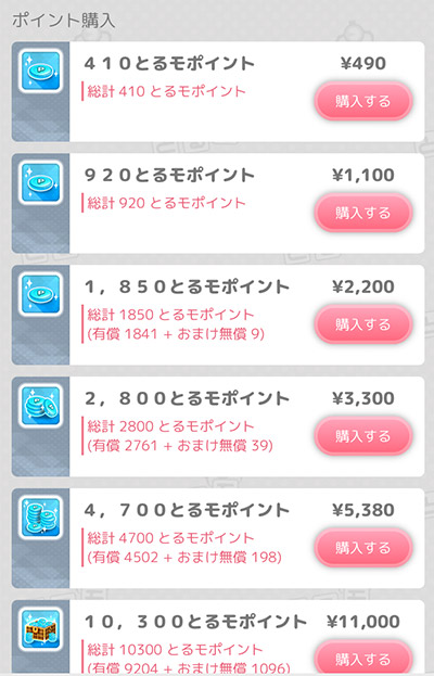 とるモではゲームで遊ぶポイントをTP(とるモポイント)という単位を使っています。